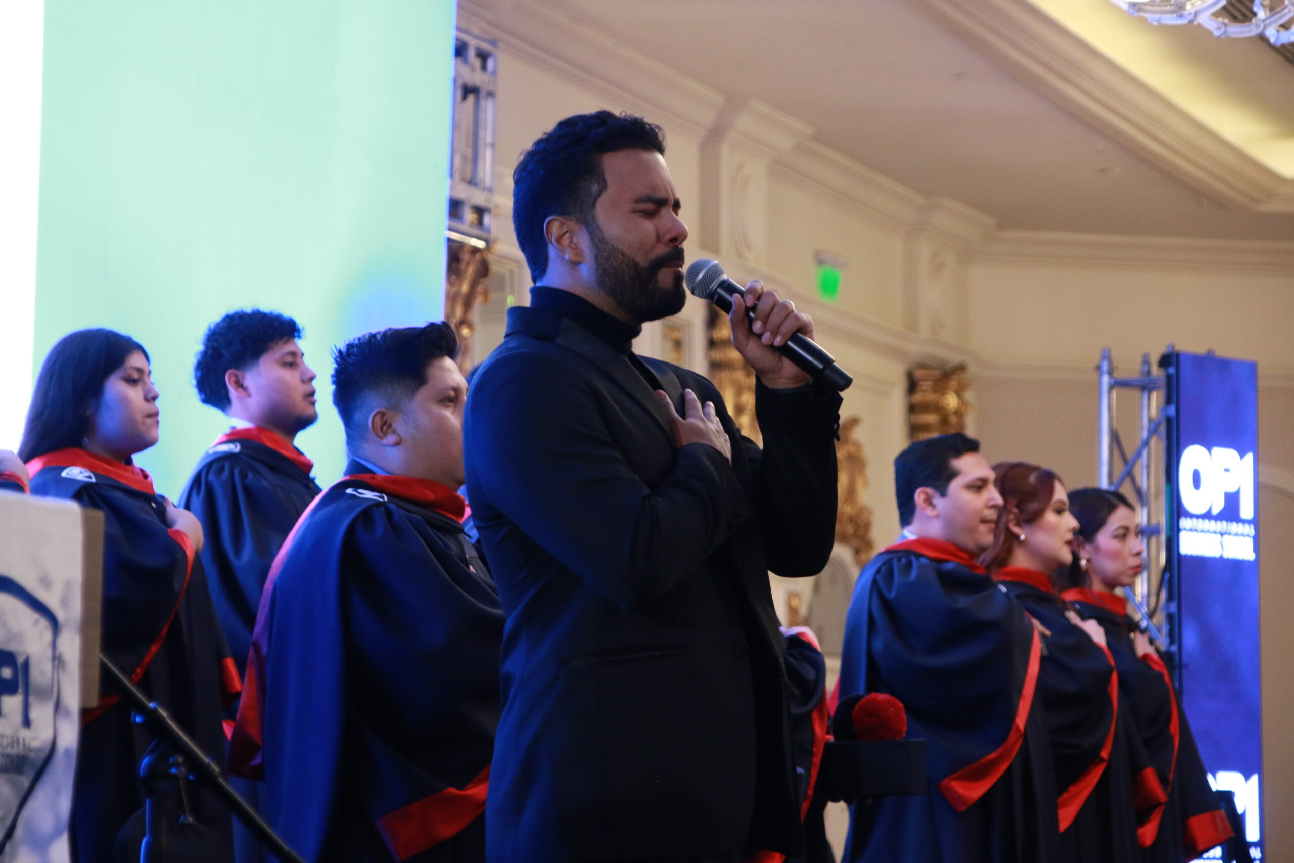 El cantante Hancer engalana la graduación de OPI International Business School con una sorpresiva interpretación del Himno Nacional