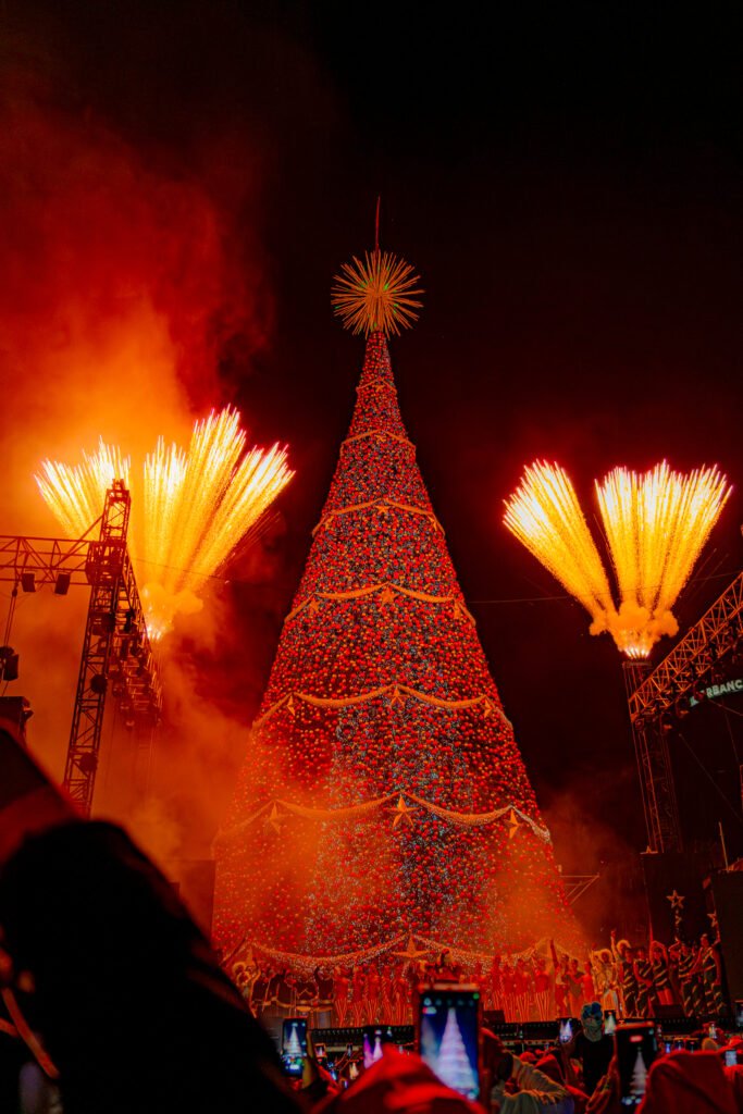 congregaron en los diferentes árboles para disfrutar del primer encendido del Árbol Gallo,