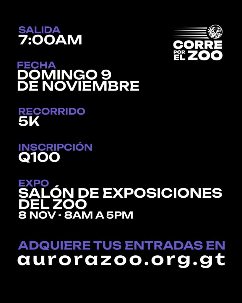 La carrera “Corre por el Zoo” representa una invitación a participar en una actividad que fortalece los esfuerzos de conservación en el Zoológico La Aurora. Con más de un siglo de historia, la institución continúa siendo un referente para Guatemala, un lugar que inspira orgullo nacional al promover el cuidado de la biodiversidad y la conexión de las personas con la naturaleza.