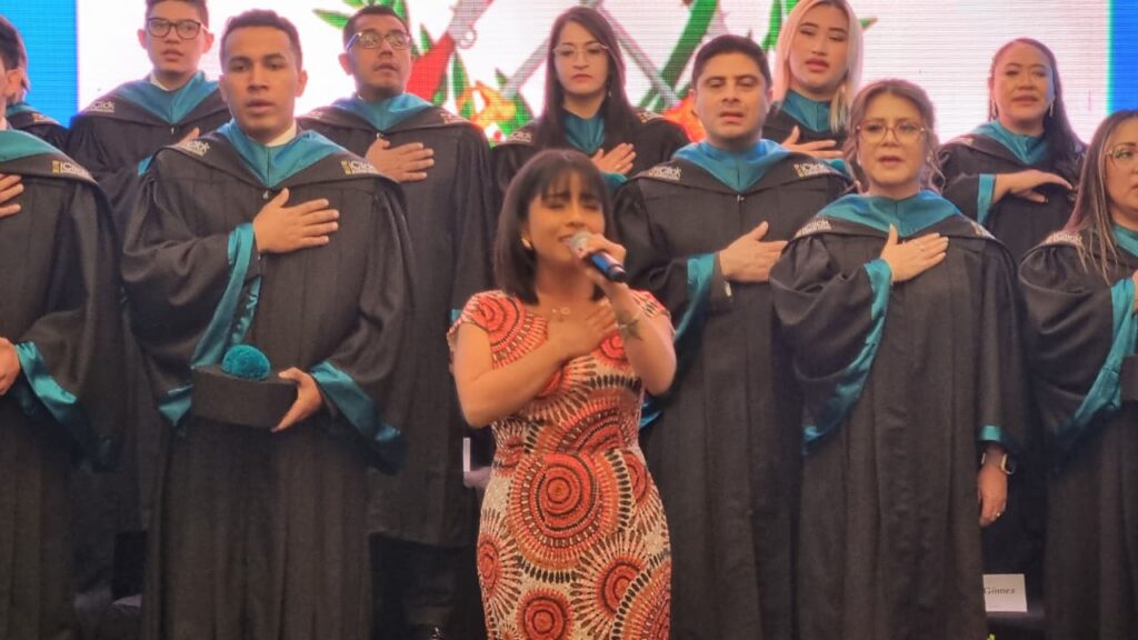 CIUDAD DE GUATEMALA – En un evento que fusionó el orgullo patrio con el espíritu de superación académica, los estudiantes y cuerpo directivo de iClick International Business School vivieron un momento inolvidable. La reconocida cantante guatemalteca y ganadora de La Academia, Paola Chuc, sorprendió a los asistentes con una emotiva y poderosa interpretación del Himno Nacional de Guatemala.
